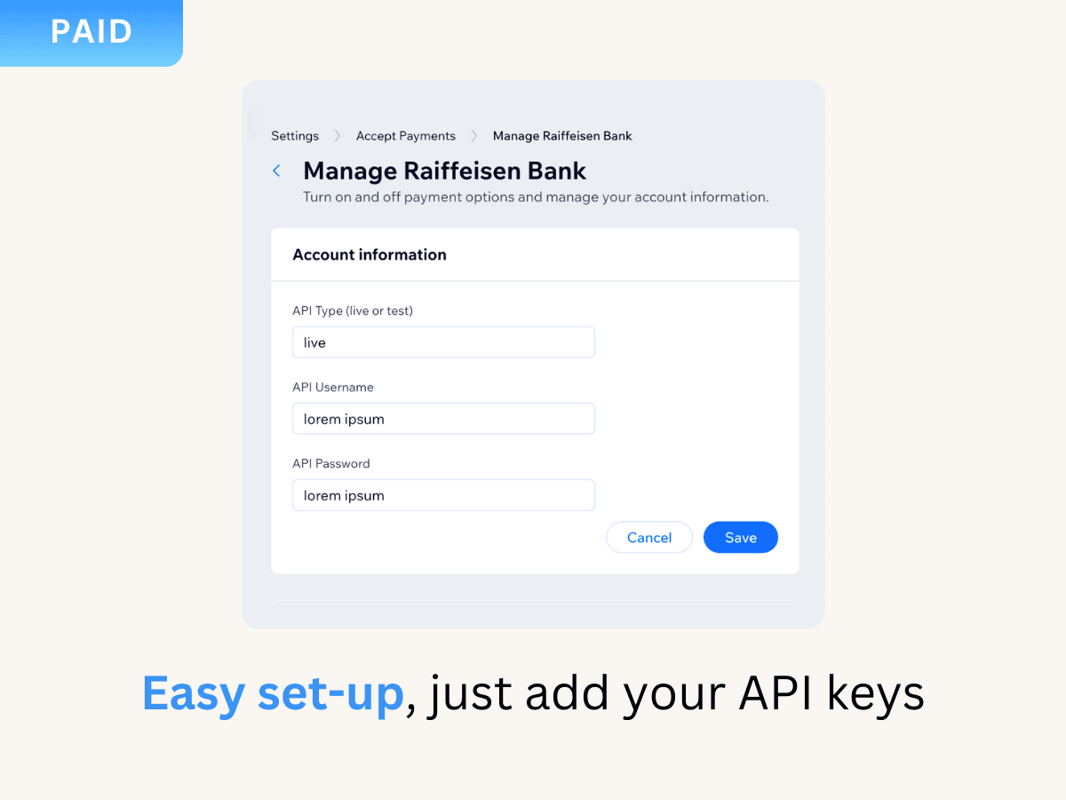 Raiffeisen Bank Integration Plugin For Wix