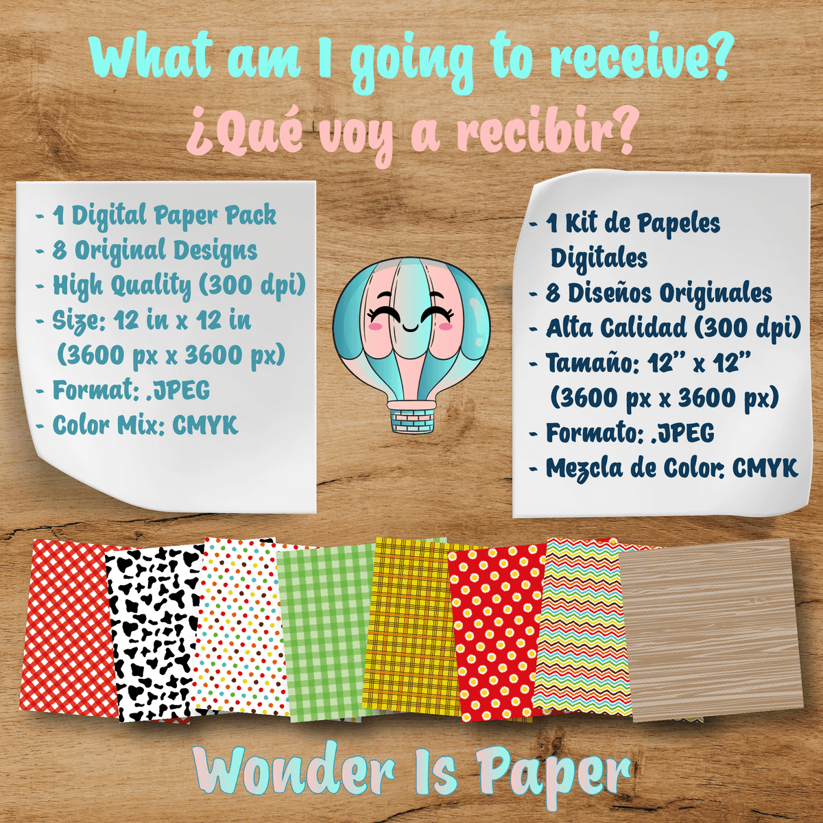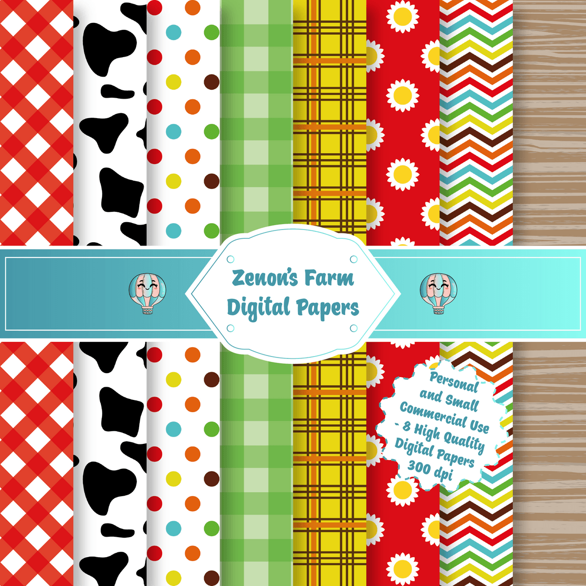 ZENON'S FARM Digital Papers - High Quality Designs - 8 Patterns - 12 in x 12 in - 30 cm x 30 cm - Ready to Print and Cut