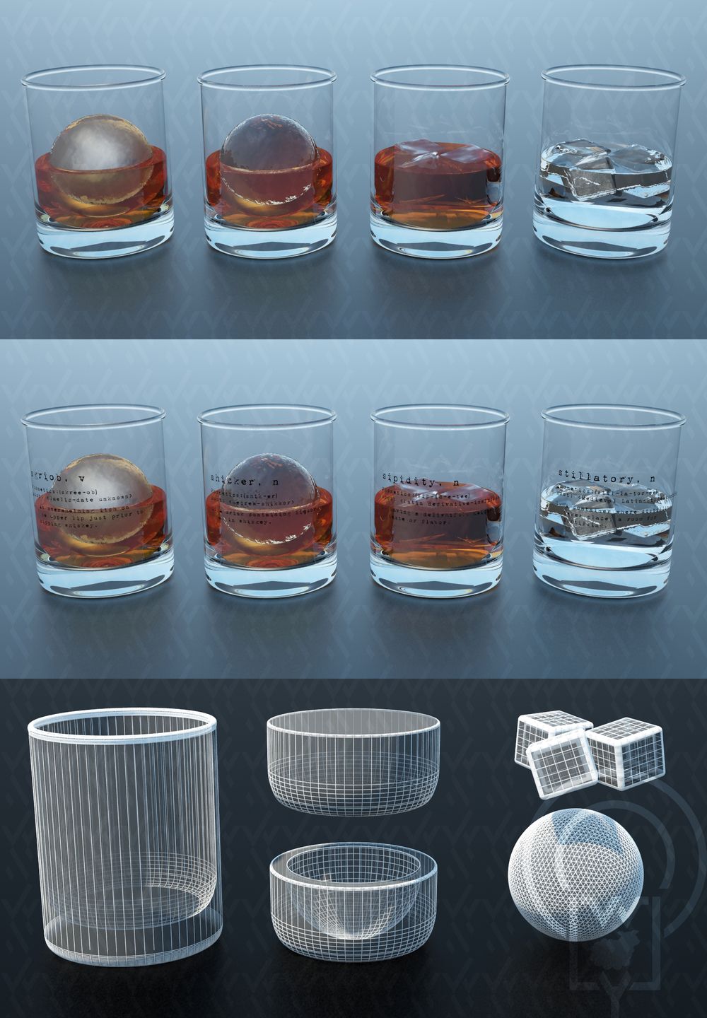 Monogram Whisky tumbler glass V2 futuristic 3D MODEL Preview photos