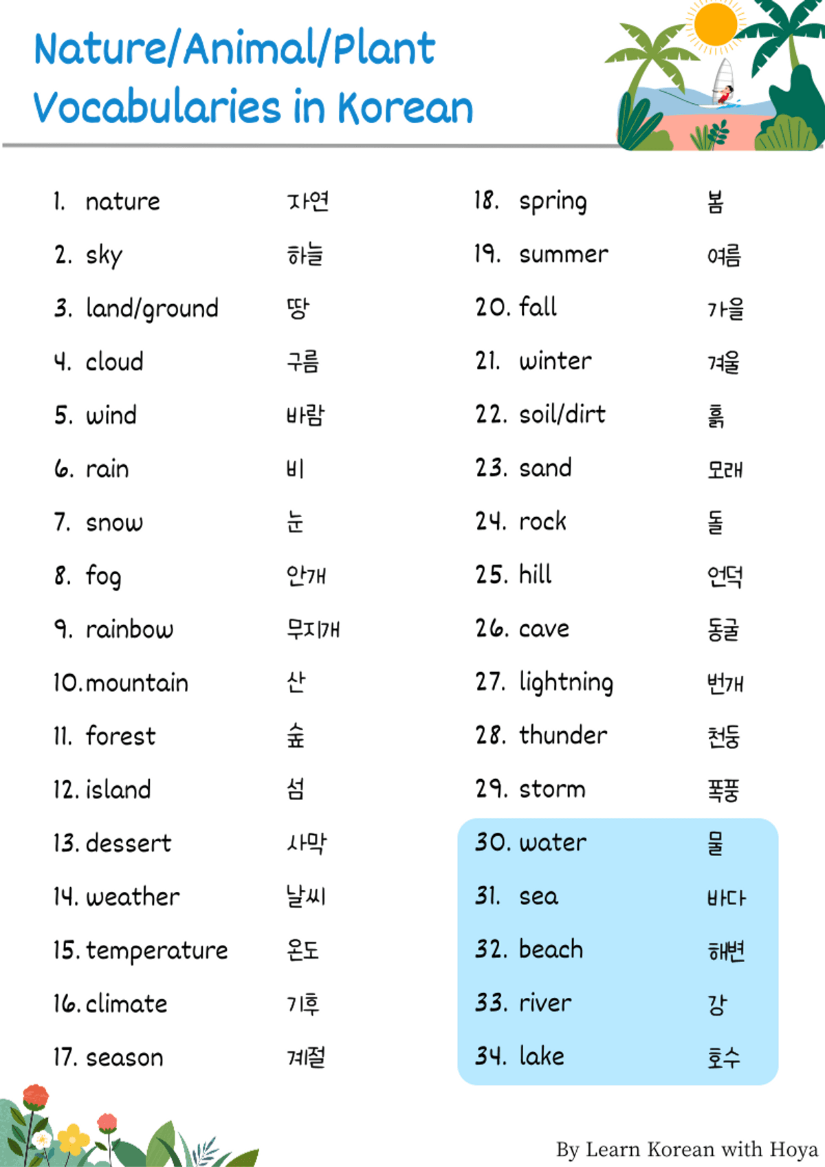 Korean Nature/Animal/Plant Vocabularies