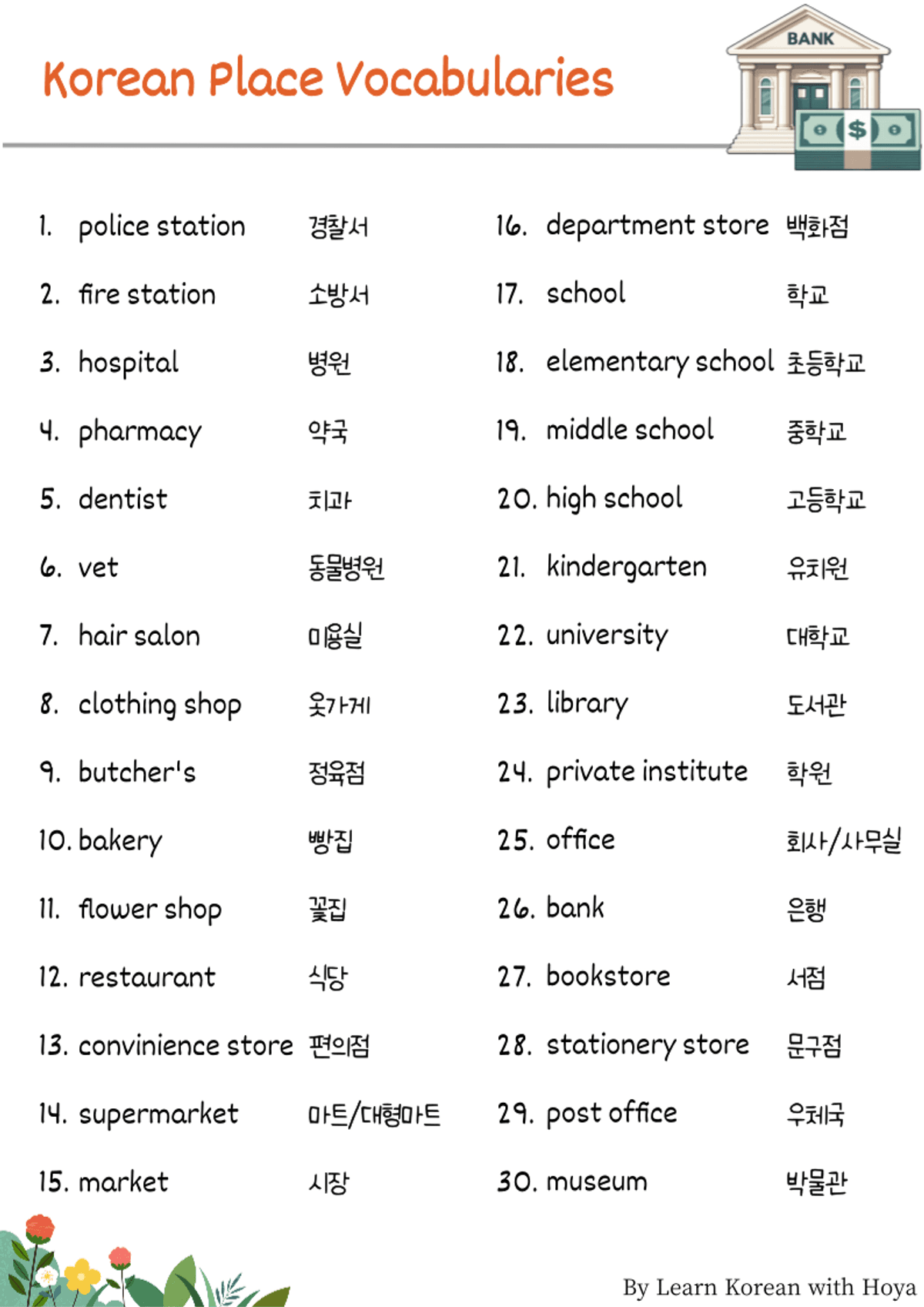 Korean Place Vocabularies
