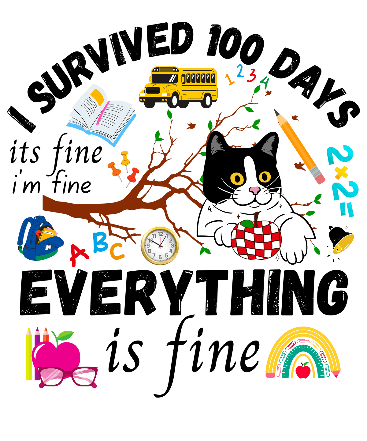 Bleached Cat I Survived 100 Days Of School Its Fine I'm Fine { 12M }