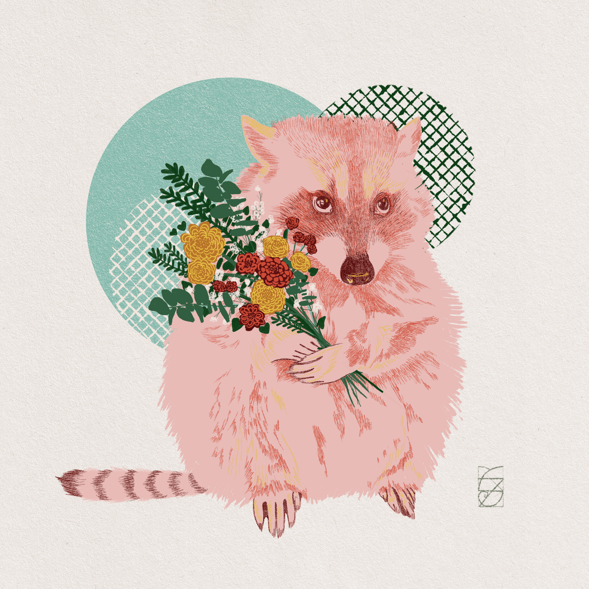"Racoon with Flowers" Digital Download